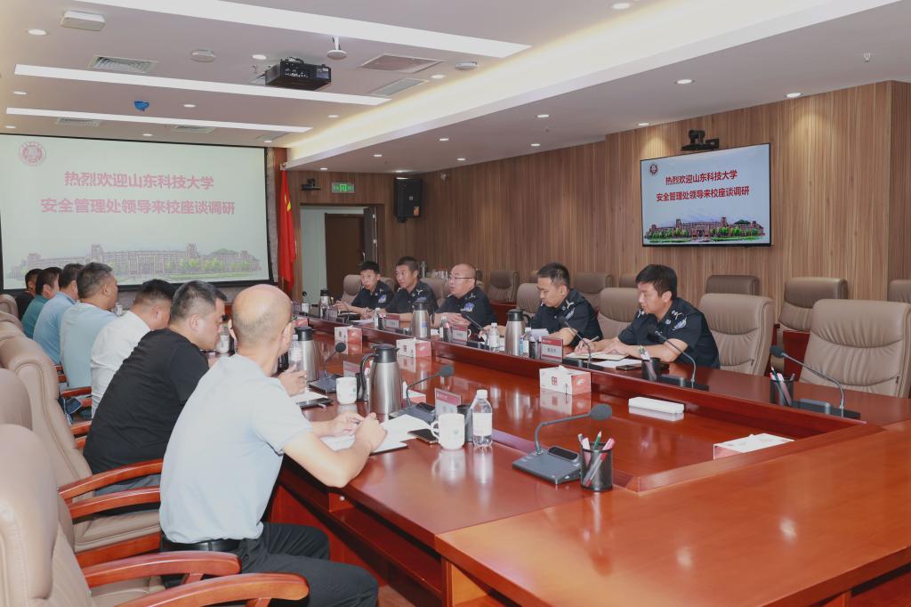 9月17日下午,山东科技大学安全管理处处长申玉三一行9人到我校交流安全管理工作。学校安全管理处处长王良忠,副处长申维东、陈松及相关科室负责人参加了交流座谈。