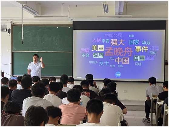 刘亚鹏还播放了孟晚舟回国在深圳机场演讲的视频,结合《美国陷阱》一书和法国阿尔斯通公司的悲惨遭遇,讲解了美国的长臂管辖。