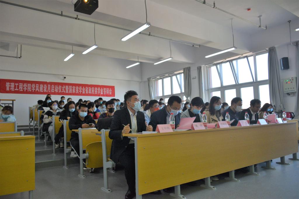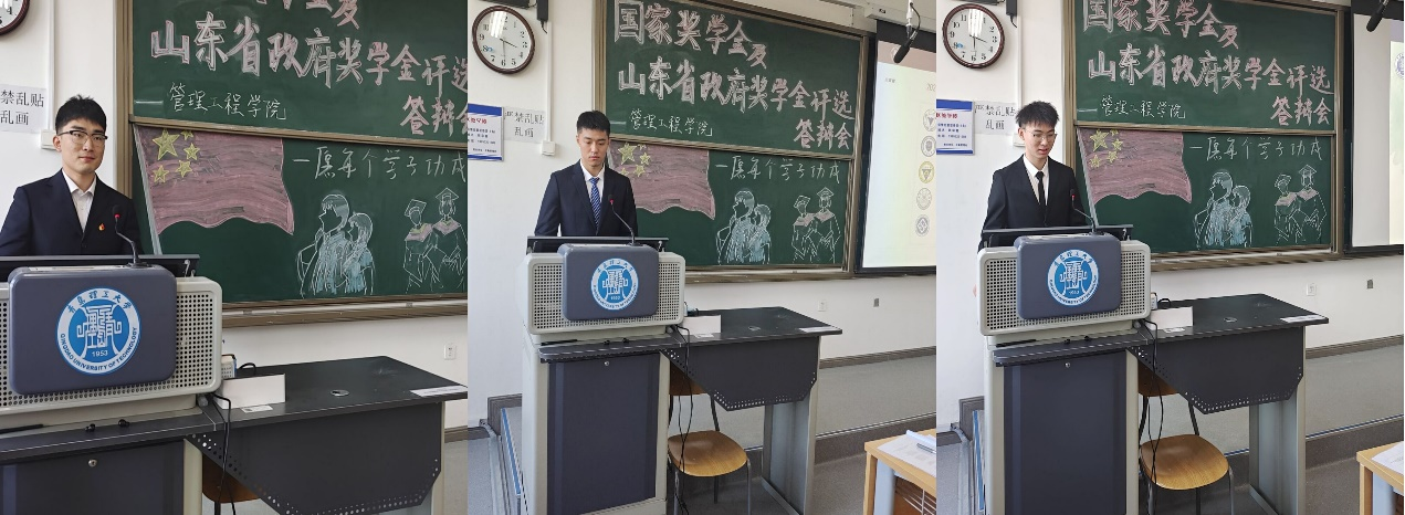 为推进学院学风建设,切实做好管理工程学院国家奖学金、山东省政府奖学金评选工作,进一步发挥优秀学生的榜样示范作用和奖学金的激励引导作用。10月12日下午,管理工程学院于2教511教室举行管理工程学院学风建设月启动仪式暨国家奖学金、山东省政府奖学金评选答辩会。学生处副处长丁于娟、校团委副书记李晓霞、土木工程学院党委副书记邵先锋、机械与汽车工程学院党委副书记董虎、环境与市政工程学院党委副书记隋学智受邀担任评委,答辩会由学院党委副书记王中帅主持。