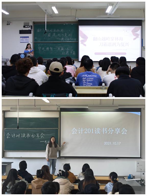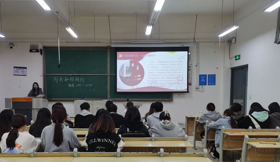 品味百年党史中的青年使命担当:经济、营销专业各团支部品读的是党史中的惊天动地篇章,各团支部将党史书籍学习与时代发展相结合,引导同学们在党史书籍学习中感悟党史发展的伟大历程,明晰青年使命担当。营销202班采用“一宿舍一篇章,一成员一小节”的方法,品读《论把握新发展阶段贯彻新发展理念构建新发展格局》,各位代表上台朗读好句好段,并简述推荐理由。营销202班李豪豪表示:“通过阅读《论把握新发展阶段贯彻新发展理念构建新发展格局》,我们可以在百年党史中窥见新时代中国经济发展的前景,作为新时代新青年,我倍感骄傲,也明白使命如磐、重任在肩,我们要抓住机遇、迎接挑战,用自身的努力奋斗为中华民族伟大复兴贡献力量。”
