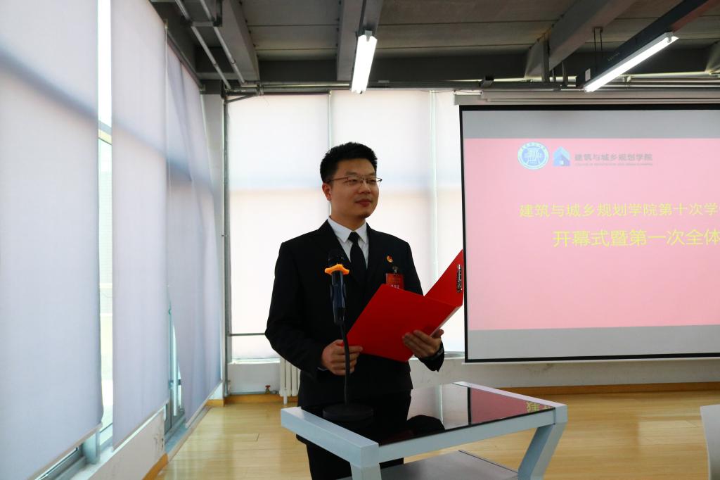 10月23日,建筑与城乡规划学院第十次学生代表大会在滨海人居环境学术创新中心七楼顺利召开。建筑与城乡规划学院党委副书记、副院长纪玉超,副院长赵琳,艺术与设计学院学生会代表宋炎,建筑与城乡规划学院研究生会代表张铜桐以及学院85名学生代表共同出席大会。大会开幕式由学院学生工作办公室副主任、团委副书记杨霈宣主持。