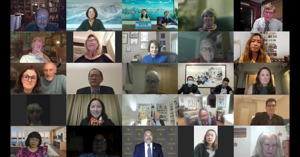 近日,我校参加了青岛市与美国长滩市举办的友城视频连线交流活动并与加州州立大学长滩分校签署合作意向书。驻洛杉矶总领馆副总领事施远强,省委外办副主任、省对外友协常务副会长李荣,市外办副主任真珠、长滩—青岛友城委员会代表、加州州立大学长滩分校助理副校长Dr. Jeet Joshee、我校国际交流处处长周红燕等近50人在线出席活动,长滩市市长罗伯特·加西亚录制视频出席。