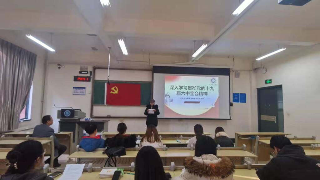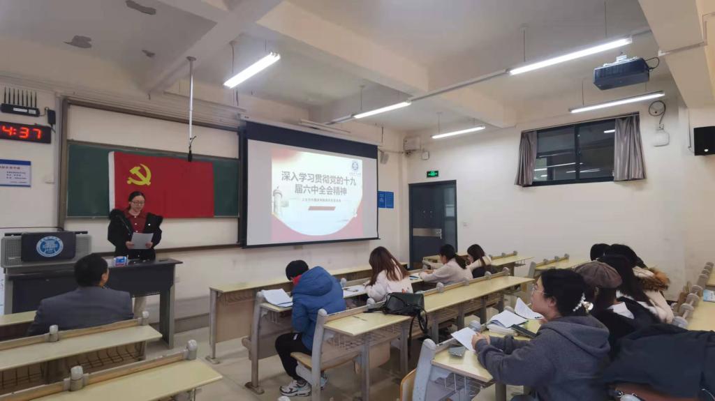 为深入学习党的十九届六中全会精神,加强党员党性教育,增强党员的责任感和使命感,11月23日,人文与外国语学院研究生党支部在教学楼B207进行“党的十九届六中全会精神”专题学习,党委副书记林海涛、研究生支部全体党员参加活动,活动由党支部书记胡真主持。