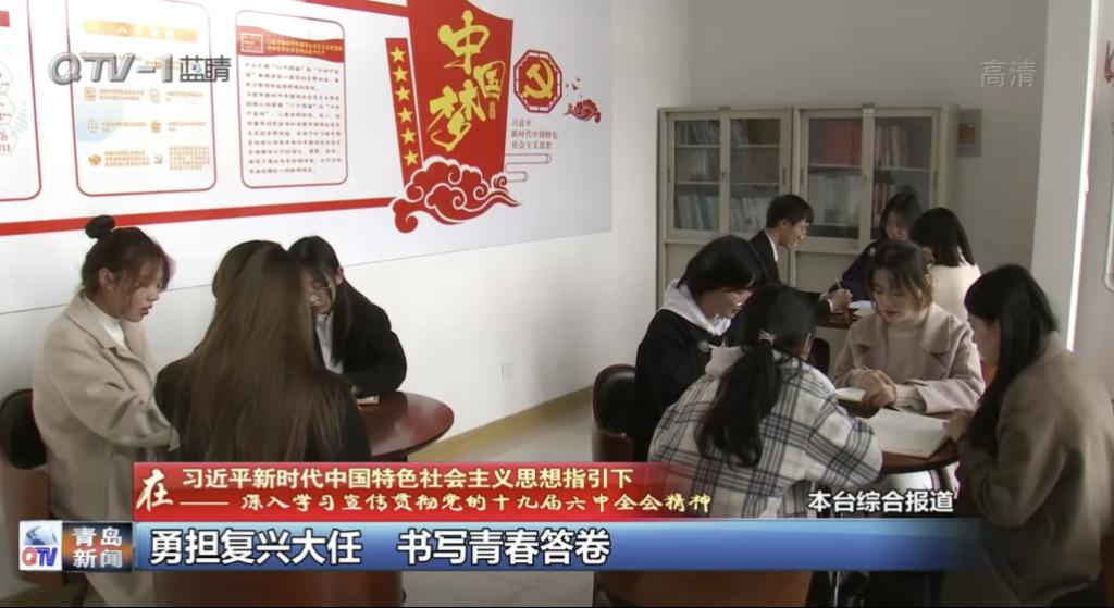 近日,青岛电视台就市学联单位成员深入学习党的十九届六中全会精神进行了深入采访,专栏报道了永利集团3044官网欢迎您商学院扬帆社全体成员对党的十九届六中全会精神深入学习的特色亮点工作,本次活动由商学院团委书记兼学工办主任薛诚,辅导员石路捷,扬帆社业务指导老师王妍参加指导。