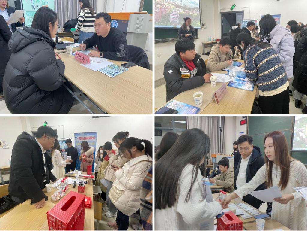 学院前期严格审核三家企业资质,认真梳理企业招聘岗位信息,及时将招聘简章、企业岗位信息通过就业推介群、微信公众号点对点做好宣传动员工作。双选会上三家公司分别就主要业务范围、未来发展前景、企业文化、招聘岗位、对职员的发展规划及薪资福利等方面进行宣讲介绍。随后同学们带着精心准备的简历到心仪企业的展位前,围绕岗位职责、发展前景、薪资待遇等问题向招聘单位咨询,单位负责人耐心解答并随后进行简历筛选和初步面试。招聘现场秩序井然,现场人潮涌动,气氛热烈。