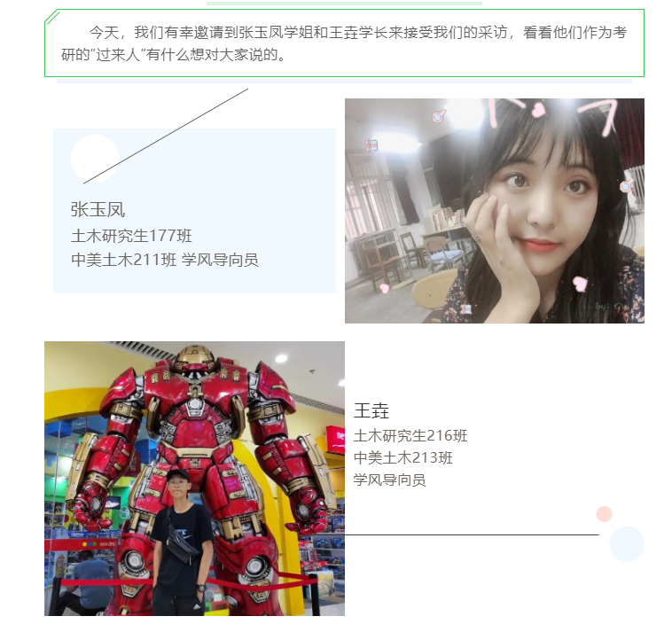 “榜样力量”示范引领。寒假期间,持续宣传毕业年级中保研学子的先进事迹,通过班级群转发给低年级的学生扩大影响力。通过优秀学长学姐的先进事迹的宣传,充分发挥榜样示范作用,引领土木学子发奋图强,认真学习,成为抓 好学风的关键环节。