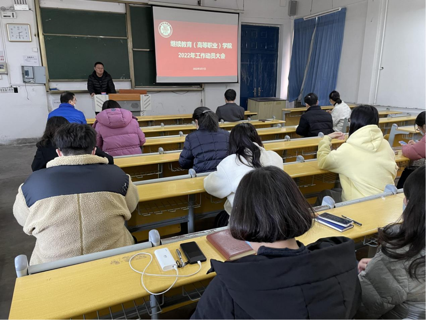 凝心聚力笃行不怠,踔厉奋发谱写新篇。3月1日下午,继续教育(高等职业)学院召开教职工大会,党总支书记孟凡勇主持会议并讲话,院长王乐生对2022年工作做出部署,全体教职工参加会议。