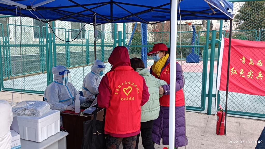 近期,西海岸新区开展多轮全员核酸检测。离退休党委黄岛退休第一党支部的党员们考虑到,长江路老家属院还有许多80岁以上、行动不便、身边无子女照顾的老教职工,前往检测点做核酸检测存在实际困难。“我们支委的同志们决定,组织开展‘我为教职工办实事、让党旗高高飘扬’志愿服务活动,义务接送这些退休老教工前往检测点做核酸检测。”赵利说。
