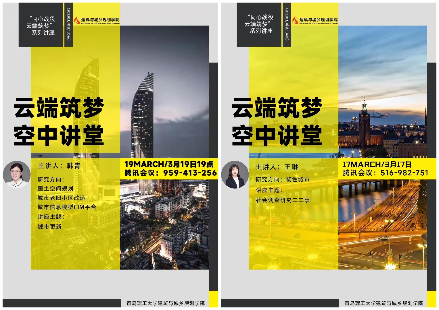 丰富教学形式,助力全面发展。为丰富学生的文化生活,提升学生学习的积极性、主动性,学院邀请并组织广大教师积极为学生作学术讲座,开展筑之韵之晚七点“云端筑梦,空中讲堂”——每日一讲活动,邀请知名教授、青年博士为学生们进行学术讲座、人生导航。