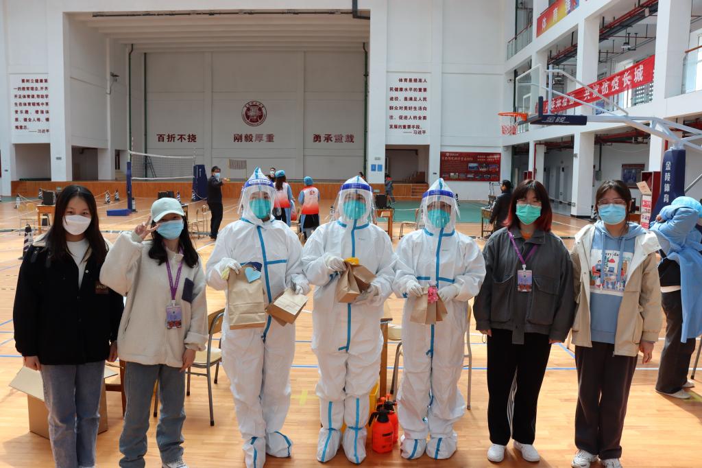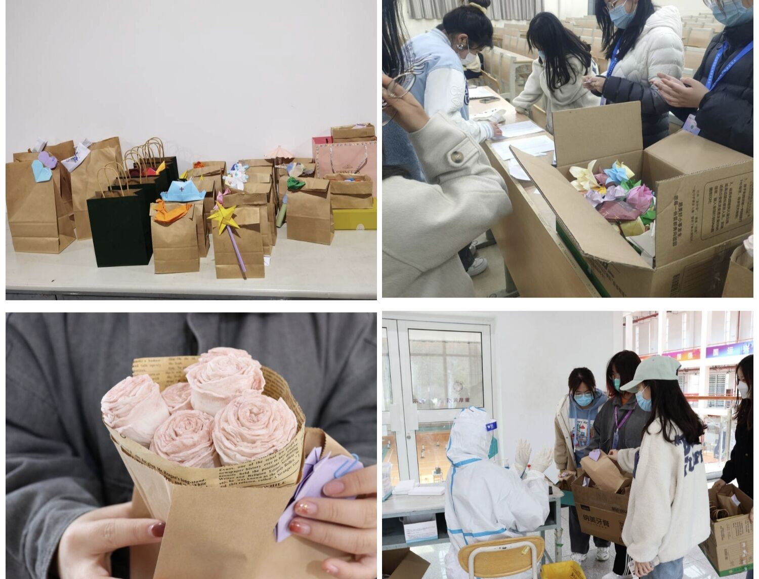 “护士姐姐您好,您辛苦了,这是我们给您折的百合花,请您收下。”“老师好,您工作了一天太辛苦了,这是我们给您写的感谢信,表达我们对您的敬意。”刚刚结束上午核酸检测的王护士收到了同学们亲手折的玫瑰花和感谢信,同为核酸检测秩序维护志愿者的小张同学也收到了小礼物,感动不已。