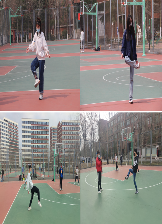 活跃毽身踢起来。“翻旋羽舞千般好,跳跃豪飞一样佳”。抛足器具踢毽子是“男生女生向前冲”的第三个项目。每个宿舍团队派出1人进行踢毽子,个数为30个,用时最短者获胜。该项目要求参赛选手不仅要有灵活的脚步柔韧性,还要有高超的控毽能力。赛场上,五颜六色的毽花在同学们脚面上翻转出一个个优美的毽圈,时间一秒一秒过去,很快,有同学20秒就完成了该项目。“在我们团队中,踢毽子是我的特长,这个项目自己发挥的还不错,应该可以为我们团队争取更好成绩!”参赛选手孟迪说到。