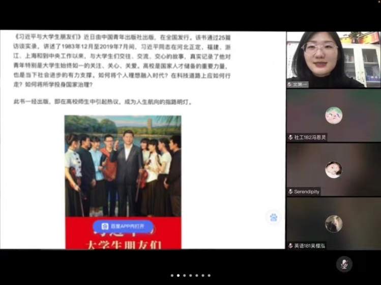学院团委书记马松带头为学院全体团干部讲授《共克时艰践初心,同心抗疫理工人》引导团员青年骨干感悟思想伟力,带头落实疫情防控政策,增强听党话、跟党走的思想自觉和行动自觉,鼓励同学们在校园中同心助力,彰显青春担当。辅导员发挥“头雁”领航作用,集中宣讲“后浪入海青春远航”“小我融入大我 强化使命担当”等系列主题团课;全院42个团支部结合党史学习教育,分别召开红色经典线上读书会,集中学习了《改革开放与大国治理》、《习近平与大学生朋友们》等重要讲话和红色书籍,学院通过在领学、导学、互学、自学的形式,扭转“快餐式”阅读的浮躁风气,引导同学坚定理想信念,以更具参与感、互动性的学习形式深化对红色精神的了解掌握,构建沉浸式品读经典的优良学风。在品味书香的过程中,学生们纷纷表示:红色经典是宝贵的精神财富,作为新时代青年,要通过阅读红色文化经典,让红色精神锤炼思想与洗礼精神。