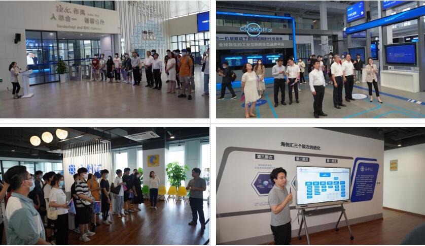 在海尔工业智能研究院,我校师生参观学习了海尔卡奥斯平台产品、应用功能及应用案例。在全球首个智能+5G大规模定制虚实融合示范验证平台前,大家体验了海尔冰箱个性化定制、设计、装配整个模拟过程,对工业互联网平台有了更直观的感受。