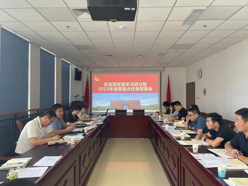 7月21日下午,学校共青团专题学习研讨暨2022年暑期重点任务部署会在嘉陵江路校区综合服务楼301会议室召开,学校全体共青团干部参会,会议由校团委副书记王鹏飞主持。