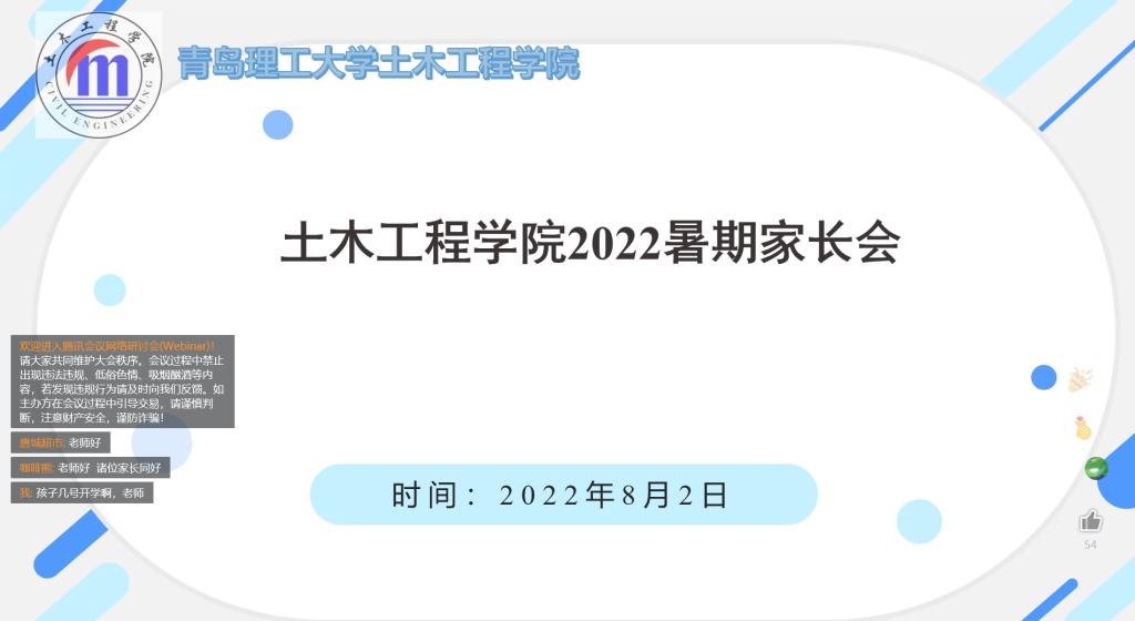 “听了孩子学长的分享,对我触动很大。自己应该多鼓励孩子”“每到放假,都很期待家长会。通过家长会,我学到了很多,与孩子交流更有信心了。”8月2日,永利集团3044官网欢迎您土木工程学院本科生家长会通过“云端”视频热烈进行,学院近千名家长积极参与。