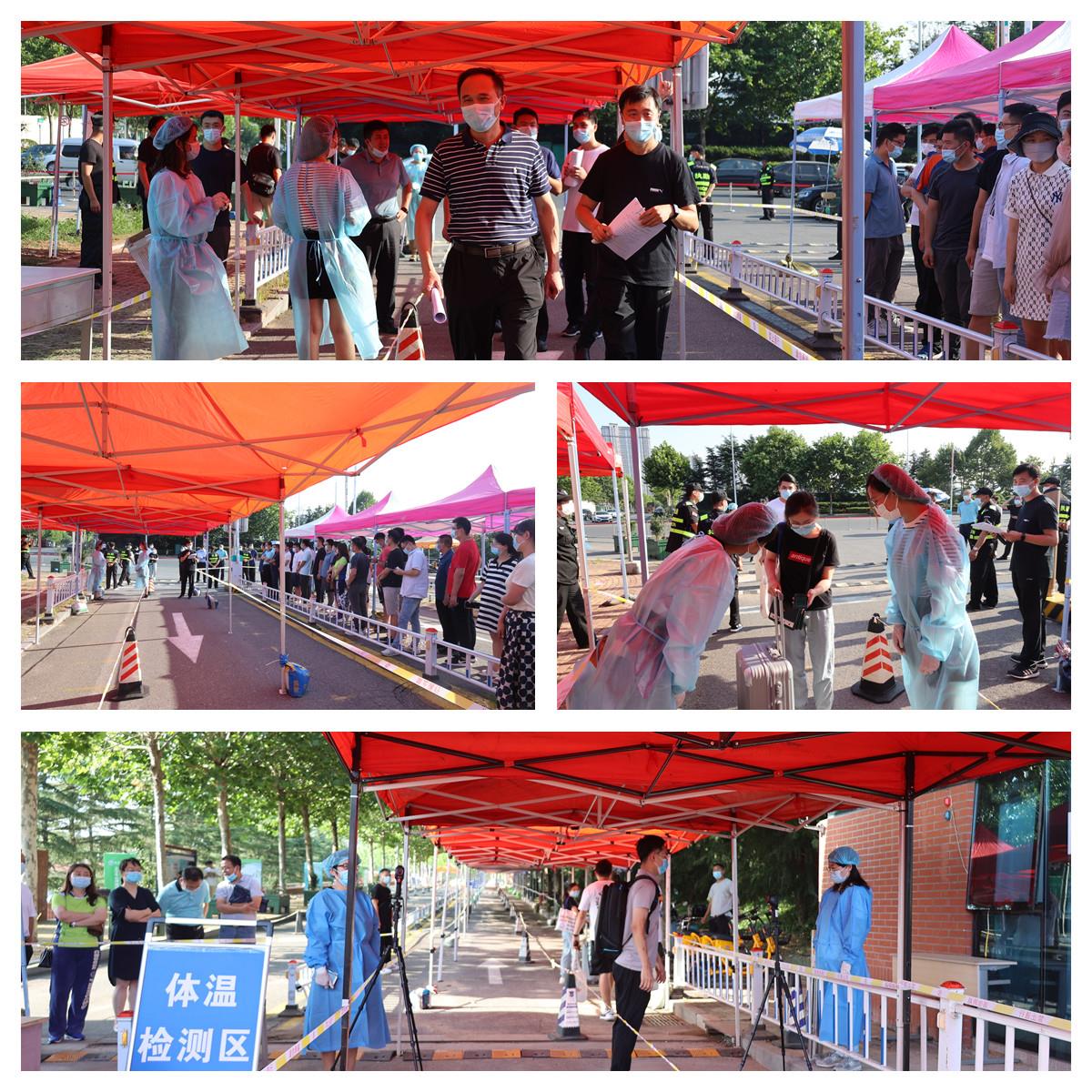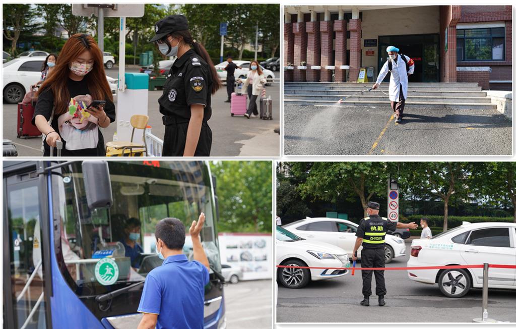 除设置学生工作组有序组织学生入校外,学校在校门入口处还设置了安全保卫组、应急处理组和服务保障组等。安全保卫组主要是做好学生返校报到现场周边的秩序维护、交通管制引导等工作;应急处理组主要是现场复验体温异常学生,并依据返校医疗应急处置流程进行分类处置;服务保障组主要是安排专员对校园进行无死角的消毒杀菌和卫生清理工作......尽管衣衫早已被汗水浸湿,皮肤也已被烈日晒红,但是大家毫不在意,每一份坚守只为让前来送行的家长放心,更为欣然归来的学生安心。