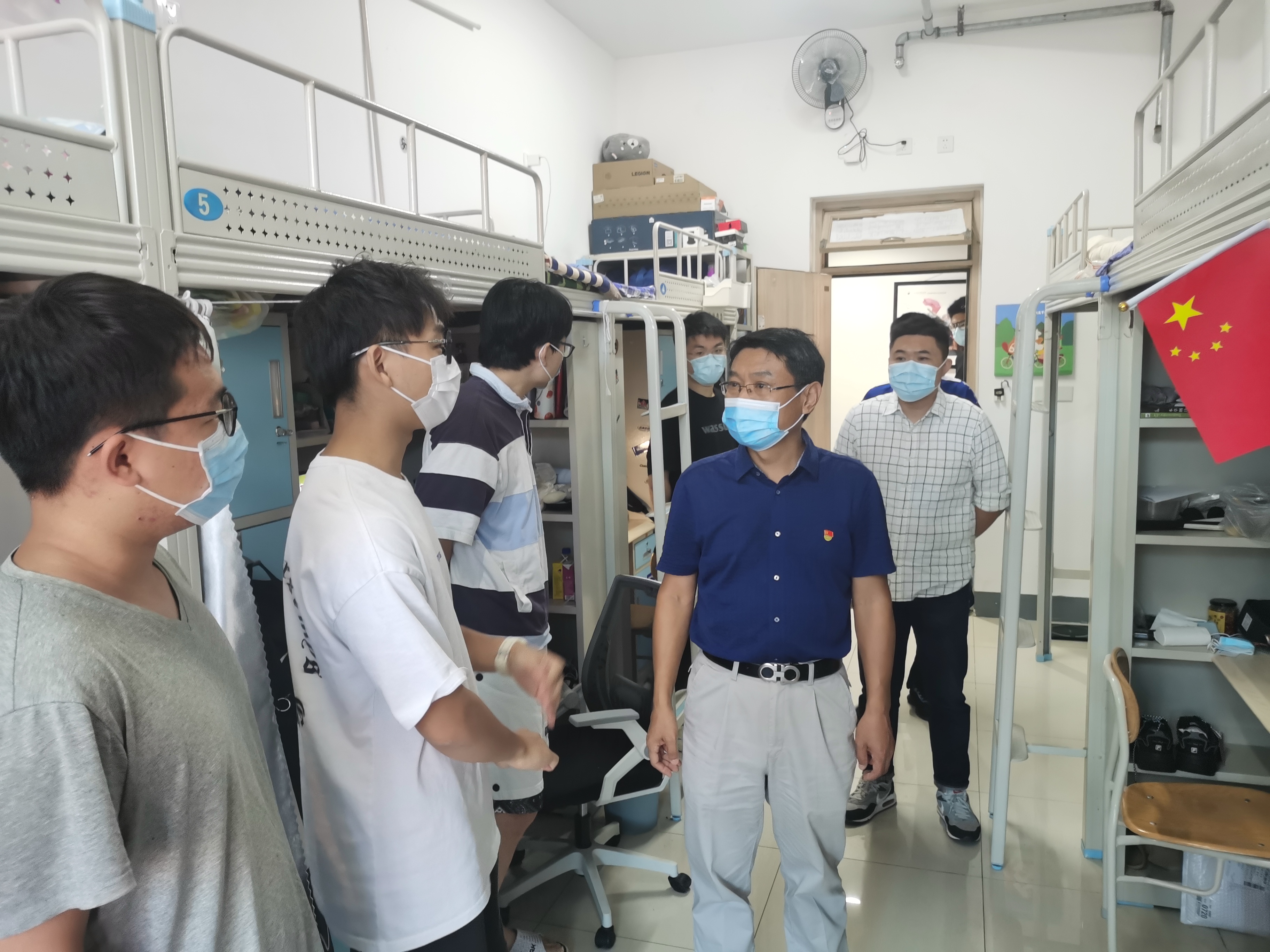 李洪民一行深入荷园社区、慧园社区学生公寓,了解同学们的学习生活实际,与同学们亲切交流,他表示,“党员宿舍”不仅是荣誉,更是激励。学生党员要二十四小时亮出自己的身份,从学习到工作,从宿舍到班级,从班级到年级,以点带面,点面结合,发挥模范带头作用,推进学院优良院风学风建设,真正实现“一名党员,一面旗帜”的目标。王中帅与备战考研的同学们深入沟通交流,关心关爱学生的考研心理状态,鼓励同学们保持乐观的心态积极备考。
