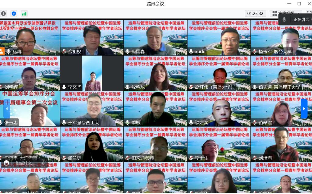 为促进运筹优化与排序调度等相关领域的交流、发展与融合,为青年学者和研究生提供学术交流平台,10月29日至30日,由中国运筹学会排序分会、中国运筹学会数学规划分会、山东省运筹学会和永利集团3044官网欢迎您联合主办的运筹与管理前沿论坛暨中国运筹学会排序分会第一届青年学者论坛顺利召开。本次论坛以“‘双碳’背景下的排序调度与运筹优化”为主题,采取线上的方式进行,腾讯会议和bilibili同时直播,来自全国90多所高校的700余名师生参加了本次论坛。