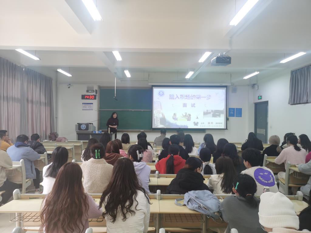内外兼修—“面试指导”打通就业指导“最后一公里”。“老师,我面试的时候很紧张,表达不出来我的想法。”,“老师,面试的时候我说话都在颤抖。”面对毕业生在就业面试中的问题,学院结合学生需求,开展“远航工程”系列活动,包括邀请专家进行面试指导,开展‘校友大讲堂’活动,邀请在专业领域的知名校友为学生讲述行业工作和面试技巧,举办2023届考研复试、调剂经验交流会,“老师是面试官”等活动。“学生在面试的时候,往往会出现紧张而导致发挥不好的情况,我们立足于学生实际,思学生所思,想学生所想,解学生所困,从多个角度提供帮助指导,让学生在面试过程中展现出最好的自己。”毕业生辅导员张冯冯表示。