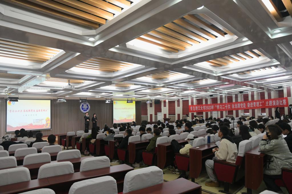 为深入学习宣传贯彻党的二十大精神,引导青年坚定理想信念,激发青年活力,凝聚青年力量。由校团委主办、校研究生会承办的主题演讲比赛在主教学楼东报告厅顺利举办。山东省演讲学会常务理事于宝真、青岛市高校演讲委员会主任潘玲、青岛市高级生涯规划师邹雪姣、学生工作处副处长王振、机关党委副书记王国华担任评委,各学院学生代表100余人观看了比赛。