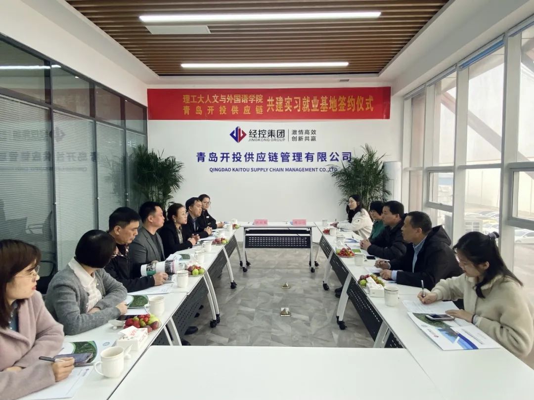为进一步推进毕业生就业和访企拓岗工作,同时作为学院迎接建校70周年系列活动的重要内容,3月24日下午,人文与外国语学院党委书记卢新明、党委副书记林海涛、副院长莫玉梅、英语专业教研室李爱晶、辅导员贾舒文一行赴校友企业——青岛开投供应链管理有限公司走访并举行实习实训就业基地签约仪式,青岛开投供应链副总经理冯晓军,北方木材市场总经理林开宗,青岛市木材行业协会会长冯国侯,副总经理刘志国、杨超,总经理助理王丽娟,学院2010级校友、招商部经理东娇、2014级校友秦倩倩等热情接待了走访一行人,双方就增进校企合作、实训就业、人才培养等问题进行了沟通交流。