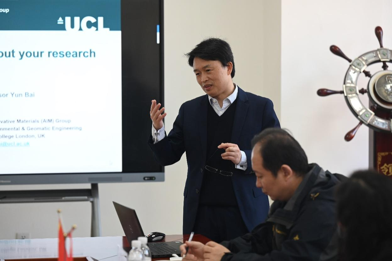 为进一步加强土木工程学院国际合作交流水平,提升中外合作办学质量,3月30日下午,土木工程学院在207会议室举办了国际合作交流座谈会,邀请英国伦敦大学学院(UCL)白云教授,为土木工程学院师生作了题为《How to do research》的专题报告。国际处处长周红燕、副处长石慧、土木工程学院院长侯东帅、副院长刘俊伟、张鹏、国际教研室主任刘晓阳以及部分师生代表参加座谈。座谈会由刘俊伟副院长主持。