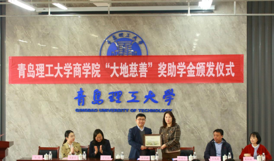 云乐鑫代表学院向基金会颁发捐赠证书,李慧宣读《关于颁发“大地慈善”奖助学金的决定》,与会领导对25位奖学金获得者进行了现场颁奖。
