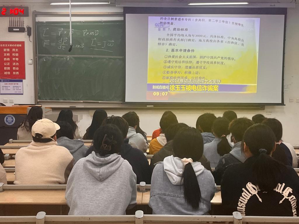 谨防诈骗“亲力行”。3月30日—4月10日,理学院以团支部为单位开展以全民国家安全教育日为主题的班团活动34场,实现组织化学习宣传全覆盖,班团活动形式多样、内容丰富,得到了同学们的一致好评。理研2201团支部邀请研究生会主席王伟杰向同学们介绍了防范诈骗的基本知识和方法,同时也通过生动的案例分析和解决方案的分享,让同学们更加深入地了解了骗局的种类、手法和防范措施。数学221团支部采取互动分享的方式,同学们纷纷走上讲台分享自己或身边人遇到的骗局和解决方案,不仅帮助同学们掌握了应对诈骗的基本技巧和方法,还提高了大家的防骗意识和应对能力。“我在这次活动中学到了很多关于防范诈骗的知识和方法,之前我并没有意识到身边的骗局这么多,也没有想过如何去防范。但是通过这次活动,我了解了许多实用的防骗技巧和经验,可以更好地保护自己和身边的人。感谢学院为我们提供了这样一次宝贵的学习机会。”理研2201班李致远感慨道。