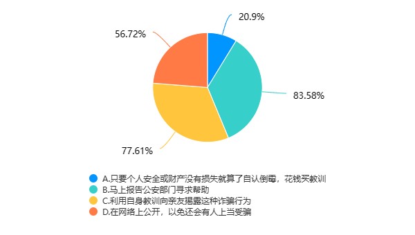 谨防诈骗“保利益”。为有效掌握学院学生防范网络诈骗意识水平,为后续针对性教育活动提供参考,积极探索更加有效的防范手段和工作机制,理学院在全院开展了防范网络诈骗宣传教育活动。在活动中,通过问卷集中调查,明晰国家安全宣传重点和难点,了解同学们防范网络诈骗意识的薄弱点,提高同学们明辨是非的能力。通过本项问卷调查,发现同学们主要对刷单类诈骗的防范意识薄弱,对此类诈骗手段不熟悉,易放松警惕。同时,在同学们感兴趣的防诈宣传方式的调查中,互动式观影和主题班会活动得票最高。
