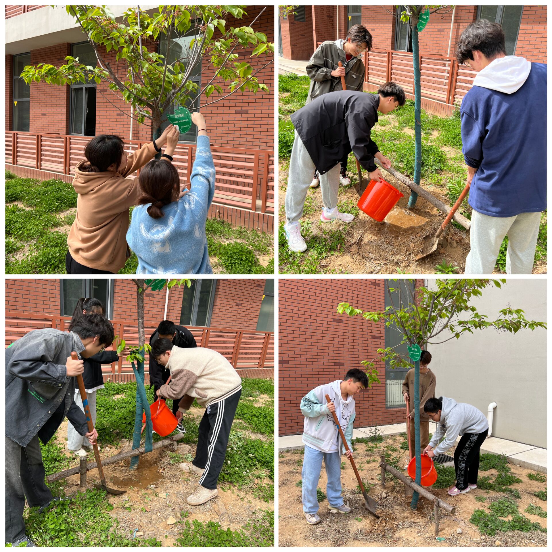 喜迎70校庆 传承劳动精神。最是一年春光好,添绿植树正当时。在回顾学校过去的70年的荣耀历程之时,更要以此为契机传承劳动精神。在荷园餐厅周围,是2018级毕业生种下的校友林,2018级毕业生代表王柯涵将这片绿荫交接给2022级新生来管理。交接的不仅是一片校友林,更是薪火相传的劳动精神与奉献意识。在劳动传承的道路上,我们不仅在劳动中锻炼意志,更是一代代理工学子传承下来的“理工精神”。通过老生、新生共植树的活动形式,希望为学校庆生,也让同学们更好地传承和践行劳动精神。