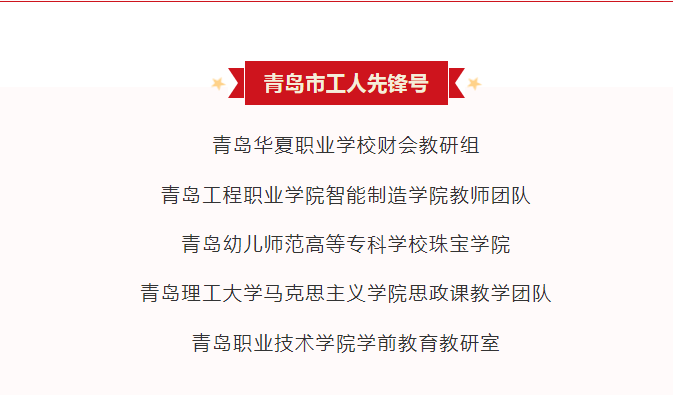 五一前夕,为弘扬劳模精神、劳动精神、工匠精神,立足岗位、敬业奉献,青岛市总工会公布2023年青岛市五一劳动奖和青岛市工人先锋号名单,我校马克思主义学院思政课教学团队获评“青岛市工人先锋号”称号。