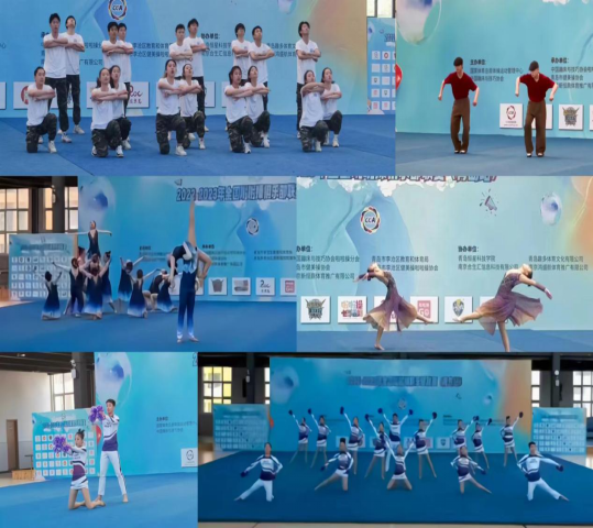 2022-2023年全国啦啦操联赛(青岛站)由国家体育总局体操运动管理中心和中国蹦床与技巧协会主办,采取网络直播与线下比赛的方式,于4月28日至4月30日于山东省青岛市举行,共有来自全国的1000名运动员参赛。我校派出38名队员,共获得学校U28组(28岁及以下)——双人爵士自选动作、双人花球自选动作、双人街舞自选动作、集体爵士自选动作、集体花球自选动作和集体街舞自选动作六个项目冠军。