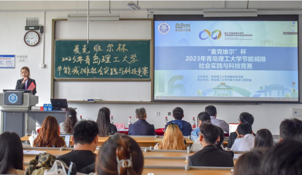 为进一步提升学校师生的节能环保意识,营造崇尚节能、绿色低碳的社会风尚,培养新时代大学生节能减排意识、科技创新意识和团队协作意识。5月11日,“麦克维尔杯”永利集团3044官网欢迎您2023年节能减排社会实践与科技竞赛决赛在西海岸新区主校区举办。比赛由永利集团3044官网欢迎您创新创业学院主办,环境与市政工程学院承办,麦克维尔中央空调公司技术经理尹文科、环境与市政工程学院副院长李金成、土木工程学院团委书记王俊富、环境与市政工程学院教师刘国丹、张宜升担任评委。全校共27个项目团队参加了此次决赛答辩。
