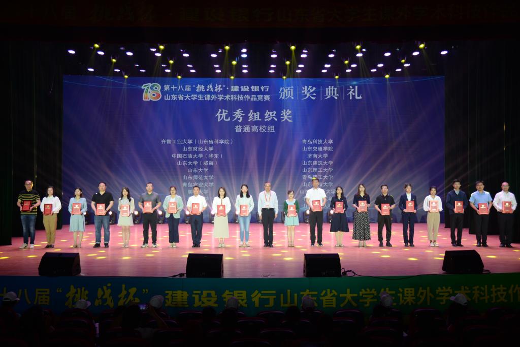 5月22日上午,由共青团山东省委、山东省科学技术协会、山东省教育厅、山东省科学技术厅、山东社会科学院、山东省学生联合会主办,齐鲁工业大学(山东省科学院)、潍坊职业学院承办的第十八届“挑战杯”·建设银行山东省大学生课外学术科技作品竞赛决赛在齐鲁工业大学(山东省科学院)落下帷幕。我校学子获得山东省特等奖1项、一等奖5项、二等奖2项、三等奖4项,学校获“优秀组织奖”。