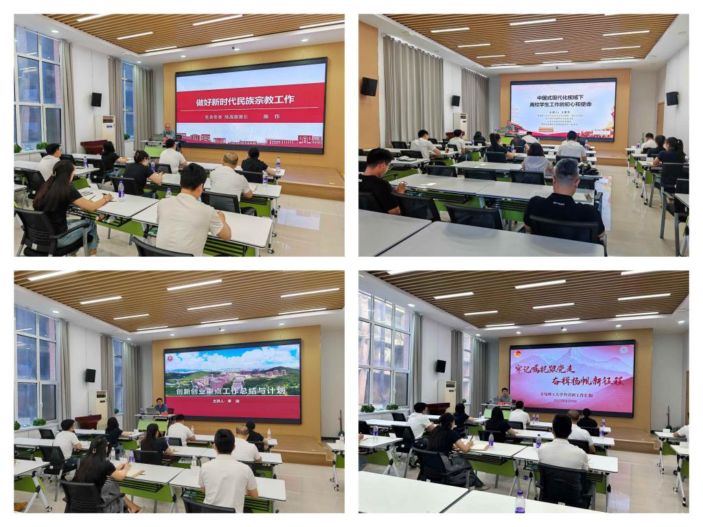 立足于辅导员的岗位职责与能力提升,邀请15位校内外学生工作经验丰富的专家做专题讲座,重点围绕大学生思想政治教育、新时代大学生党建工作、民族宗教工作、资困助学工作、辅导员职责定位与工作方法、学生就业工作、共青团工作、心理健康教育、创新创业教育、大学生网络舆情处理、学生事务标准化建设、大学生国防教育、突发事件应急处置、学生社区综合管理等方面。同时还邀请了我校优秀辅导员代表分享工作经验,助力新入职辅导员的职业能力提升。专家们通过丰富的学生工作经验,阐释了辅导员到底“做什么”“如何做”,牢记职责使命,树立“有信仰、有境界、有本事、有爱心”的新时代辅导员形象,坚持“知为要”,用真心真情赢得学生真信真服,从内心深处贴近学生;坚持“行为本”,勇于创新,甘于奉献,担当作为,知行合一,做到学为人师、行为世范。