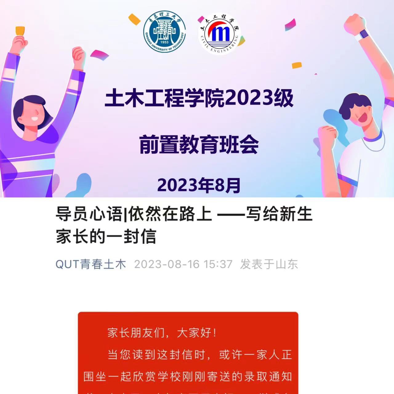 新生录取结束之后,学院组织新生辅导员撰写《依然在路上——给新生家长的一封信》,从大学的重要性、给家长的几点建议等方面,表达筑牢家校育人共同体,绘制健康成长同心圆的美好愿望。与此同时,邀请家长与学生同时参加入学教育前置线上班会。班会围绕学院概况、专业建设、人才培养、考研升学、安全教育等方面作了详细介绍,勉励同学们踔厉奋发,砥砺前行。“沉浸式”主题班会引起家长强烈共鸣,纷纷表示将更加努力担负起家长的责任,支持学院工作,携手共育未来。