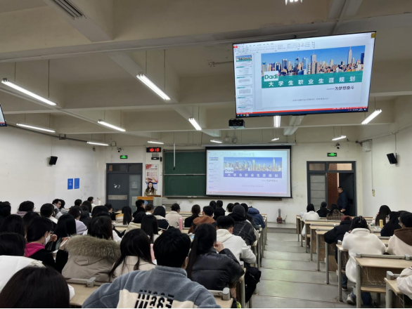 开设“职业体验”课堂,学院校友“沉浸式”职业规划助力毕业生明晰行业未来。学院以学校70周年校庆为契机,将学院优秀校友“请进来”,帮助毕业生代入式、沉浸式进行职业发展体验。学院2000级会计系校友、佳德信集团董事长姜芳芳为学生作行业前沿和职业发展报告会,以自身职业发展的鲜活事迹和榜样力量感召在校生积极就业创业。财务管理专业程圣媛感慨道:“听完董事长学姐的分享,我对自己的职业发展充满信心,只要保持努力、把握机会,董事长学姐能做到的,我们也能做到!”