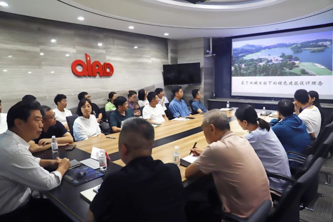 见面会上,青岛市民用建筑设计院党支部书记任友泉、院长徐刚、首席总建筑师王东波、绿建节能研究中心主任车云兵、人力资源总监宋文姝对学院一行的到来表示热烈欢迎。党委书记肖学斌简要介绍了学校、学院情况。他强调,本次校企共建活动,带着学生走进企业更好的了解企业发展,了解行业变化,让学生坚定就业信心,实现学院与企业的“双向奔赴”,实现校企双方人才培养的合作共赢。王兴田教授则以《基于双碳目标下的绿色建筑设计理念》为主题,结合丰富的经典案例,将绿色价值观宣贯融入绿色建筑思想和方法的全过程,高屋建瓴,给人启迪与思考,为企业从业人员送去了精彩的专业盛宴。