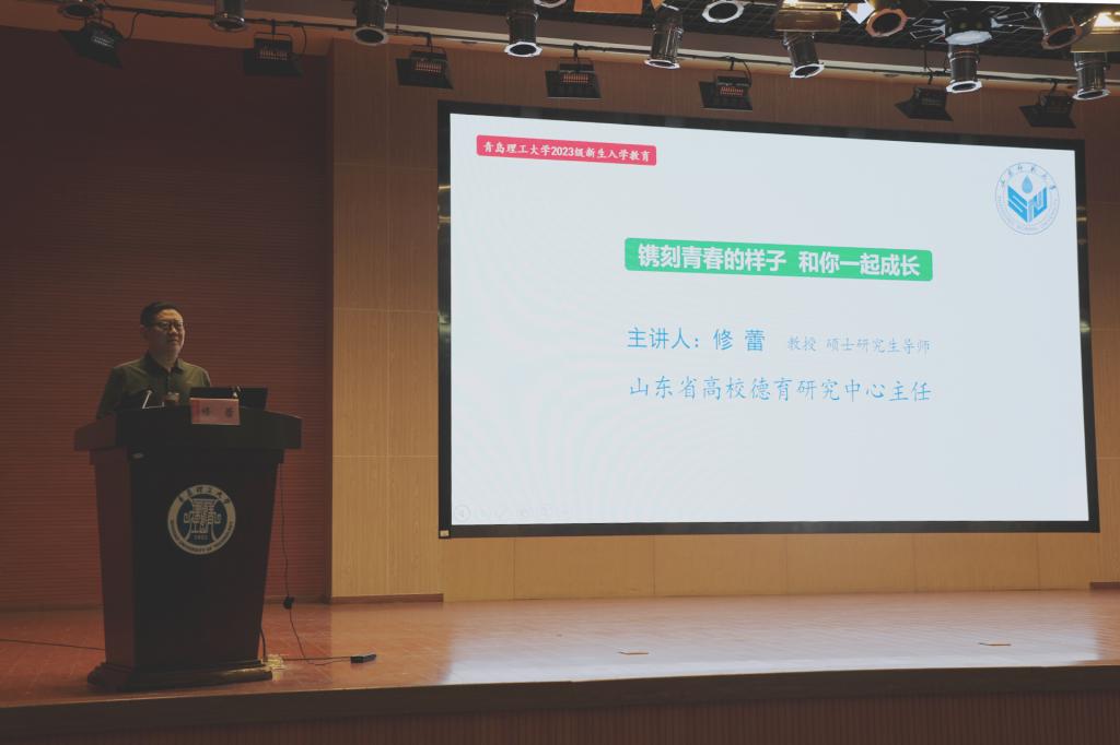 育人的根本在于立德。山东省高校德育研究中心主任,山东师范大学教授修蕾,以《镌刻青春的样子》为题,为学生上了一场德育大课。修蕾结合新时代大学生的使命,以对己三问、努力成为更好的自己、大学期间需要把握好几对关系为主线,向学生阐述了读大学的根本目的,教育大家要增强社会责任感,心系祖国,志存高远,脚踏实地,做有家国情怀、有扎实学识、有坚韧品格、有创新精神的时代新人。