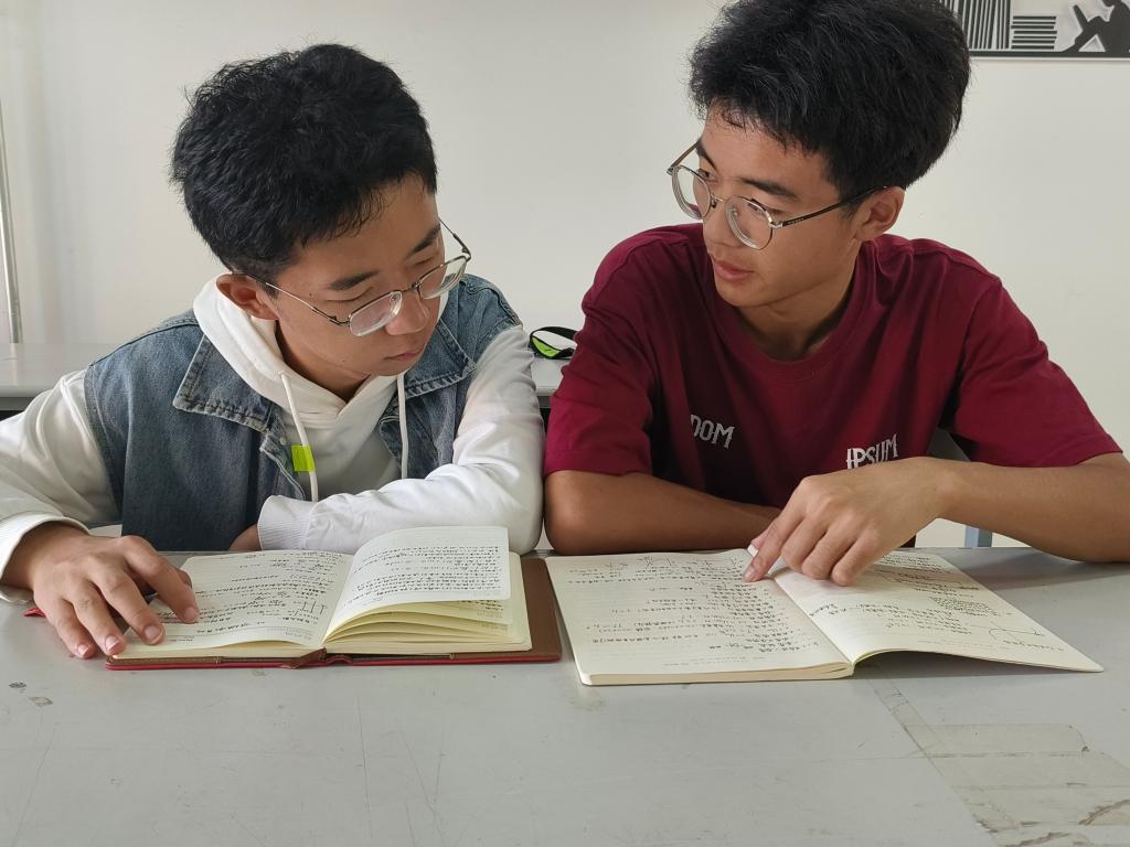 今年六月毕业生离校之际,2023届毕业生给学院留下了珍贵的礼物,或是毕业生精心挑选的专业用书、优秀文学作品、高含金量论文集,或是写满数理公式、符号、定理、解题思路的学习笔记,或是自己考研时候用到的、划满重点的学习资料等。为了更好地传承这份情怀,学院分批次安排新生同学前来学习和阅读这些资料,感受学长学姐的博学、认真、勤奋与努力,以及对母校沉甸甸的爱。“从这些一笔一划绘就的公式与笔记中我切实感受到了学长学姐认真的学习态度和扎实的学习作风,真是太震撼了!我要好好地向他们学习!”物理232班陈恩策说道。