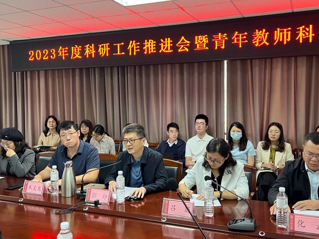 郭印介绍了我校2023年度文科科研工作的整体情况,对科研项目申报与科研成果报奖流程,以及科研规范与科研管理政策进行了详细解读。