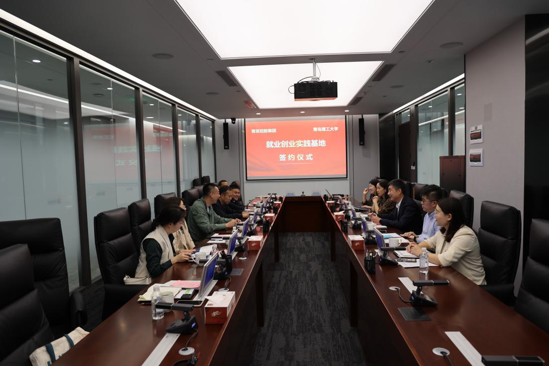 为积极推进校企合作,持续拓岗位、搭平台,10月19日,学生工作处副处长、就业指导中心主任牟永川,环境与市政工程学院党委副书记、副院长隋学智,理学院党委副书记、副院长纪玉超,管理工程学院党委副书记、副院长王中帅,商学院党委副书记、副院长李慧,人文与外国语学院党委副书记、副院长林海涛及就业指导中心工作人员赴青发控股集团开展校企合作洽谈。青发控股集团人力资源部部长石泉,综合部部长唐翠翠,中德集团人资部部长张凯及综保集团综合部部长秦铮彤参加座谈。