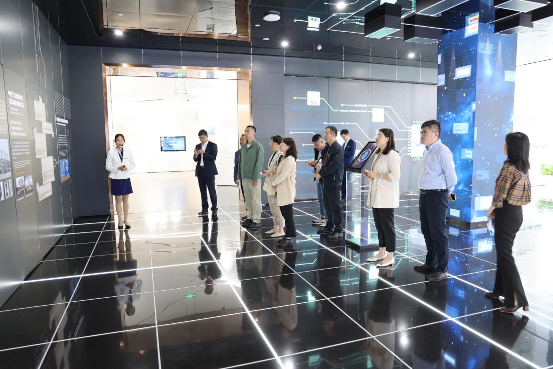牟永川一行首先到青岛国际航运贸易金融创新基地、航运贸易金融融合创新基地进行参观,沉浸式感受数字化展厅大屏幕上演的自贸区过往历程及园区沙盘擘画出的未来发展蓝图。