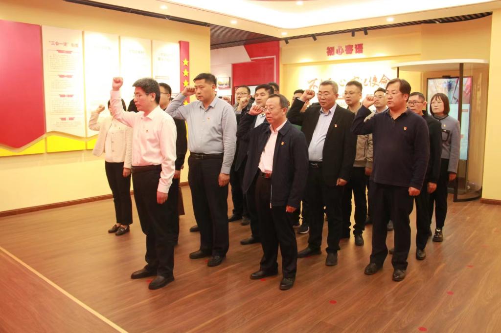 参观学习中,全体党员干部面对党旗庄严宣誓,铮铮誓言表达不忘立德树人初心,牢记为党育人为国育才使命,为党的教育事业奋斗终身的信心和决心。