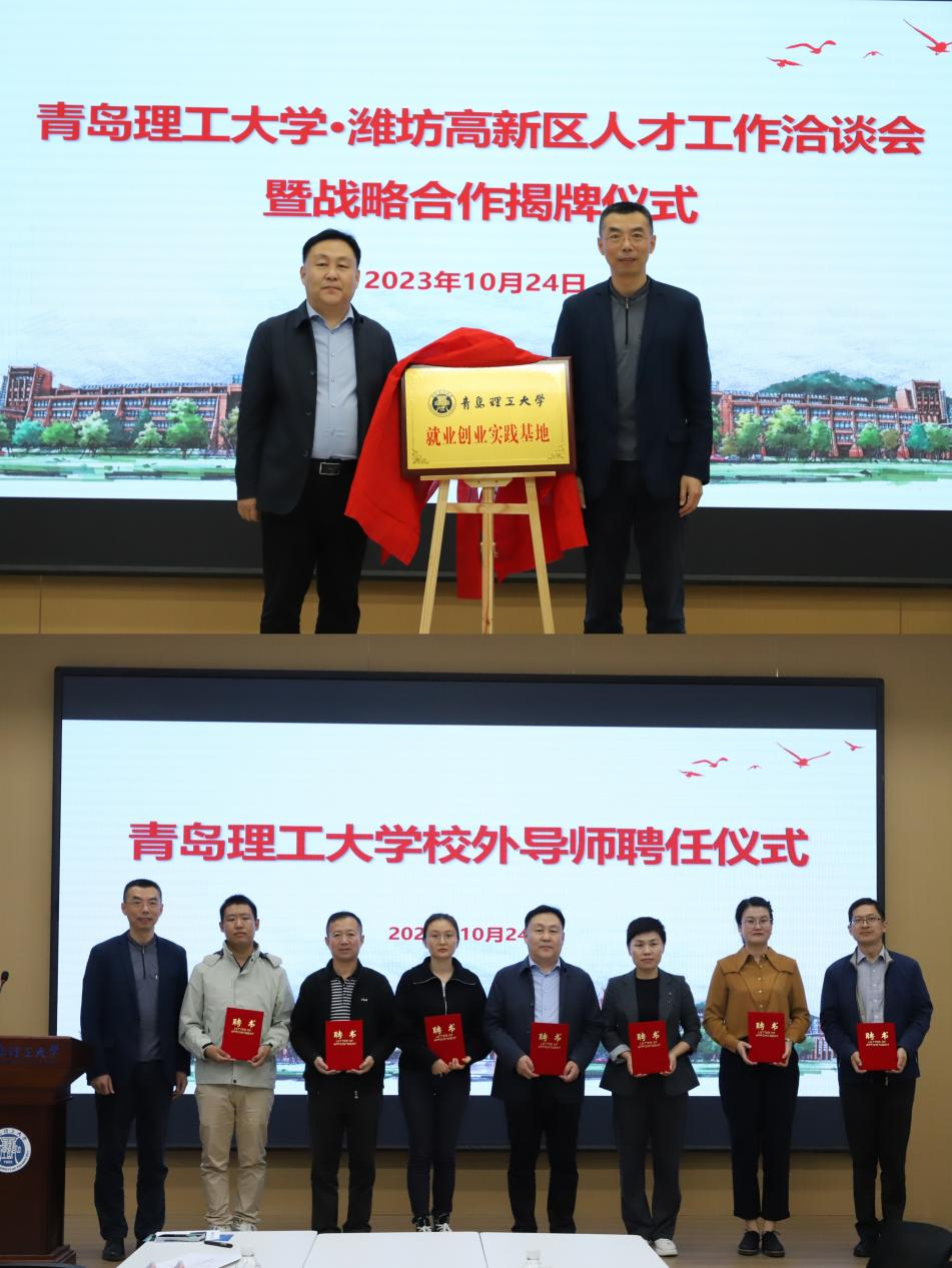 借此双选会契机,学校开展潍坊高新区人才工作洽谈会暨永利集团3044官网欢迎您就业育人“双量”基地校企共建对接会,与“组团”前来招聘的潍坊高新区达成战略合作,同时为青岛大牧人机械有限公司等3家单位颁发了就业育人“双量”基地牌匾,聘任7位政企方优秀代表作为校外职业生涯规划与就业指导导师。进一步集聚资源,探索建立协同的人才培养体系、高效的科技创新体系、活力的创业就业体系及暖心的服务保障体系,形成政校企良性互动、优势互补的深度融合发展格局。