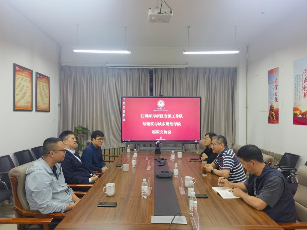 11月1日,驻青岛西海岸新区省派工作队牵头负责人、山东发展投资控股集团资深经理王胜军一行来建筑与城乡规划学院调研,双方进行座谈交流。会议由学院党委副书记范晓光主持,驻青岛西海岸新区省派工作队队员、山东省新动能投资管理有限公司副总经理刘宗明,学院党委书记肖学斌,副处级组织员裴根,学院团委书记、学工办主任杨霈宣,驻青岛西海岸新区省派工作队挂职干部刘超参加会议。