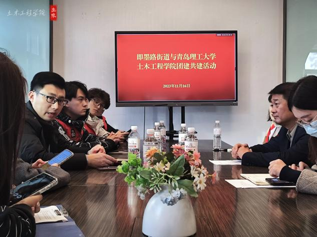 街道领导对学院一行人的到来表示欢迎,街道党工委副书记周继程表示,街道认真落实党的二十大精神,热烈欢迎更多大学生走进社区,参与基层建设,让大学生逐渐了解社区,熟悉社区,服务社区助力社区建设,同时促进学生成长;街道将积极配合学校、学院,结合实际为学子提供广阔的实践平台,实现共赢。闫旭表示,学院团委与街道团委开展团建活动,就是要引导广大青年团员进基层、进社区,经验互鉴,让基层团组织更好发挥联系青年、服务青年、引领青年的重要作用;希望开展更多形式多样的有益于青年成长成才、有益于社区建设发展的党团共建活动,增强学校、街道团组织的凝聚力、影响力,不断提高团组织的引领力、组织力、服务力。