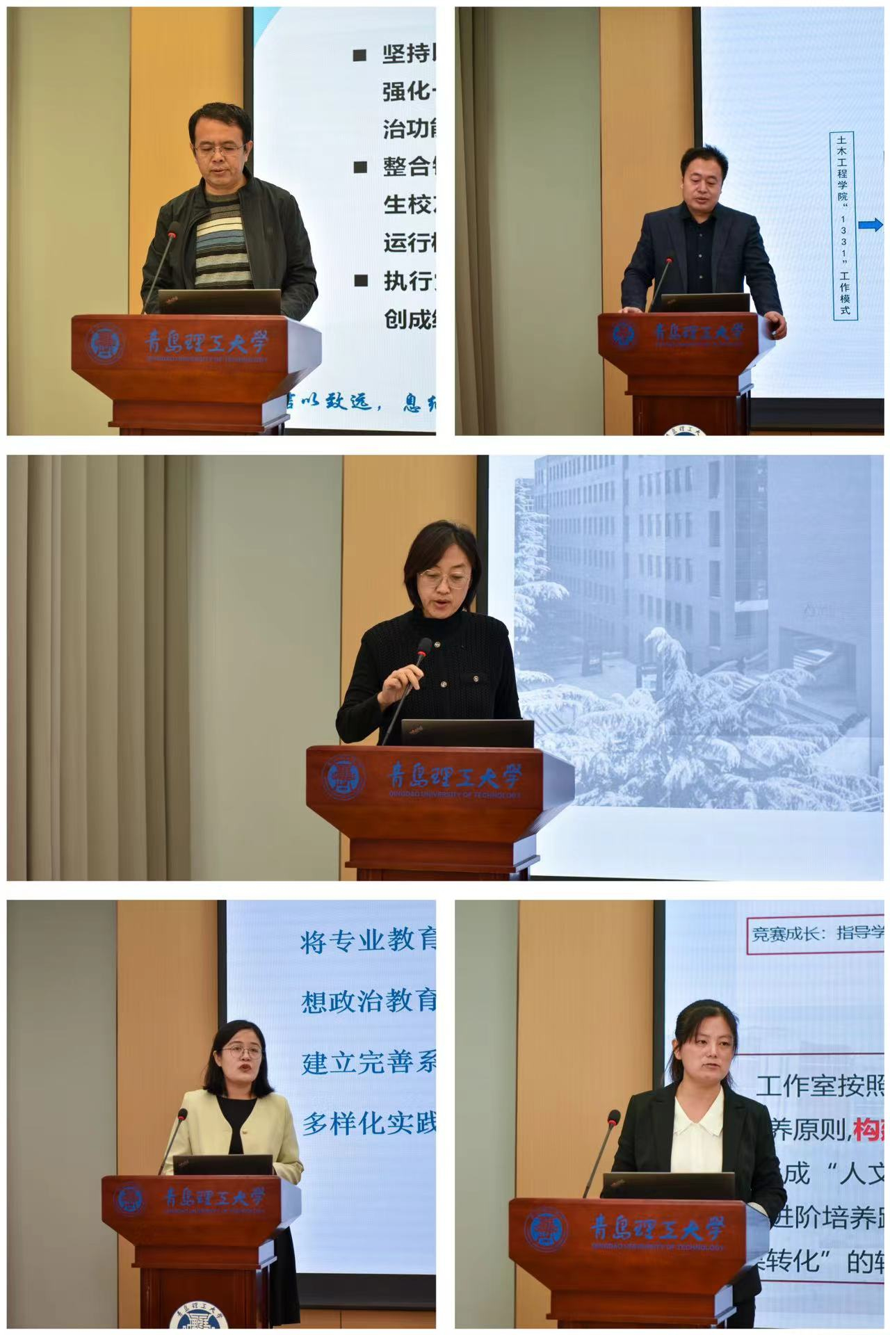 “领航青春”文化育人工作室、“一站式”公寓育人研究工作室、“敦华匠心”三全育人工作室、专业教育融入思政教育全过程研究工作室、“6+N”一体化创新创业辅导员工作室主持人依次进行答辩,答辩采用PPT陈述及支撑材料评审形式进行,对照工作室中期考核任务要求,详细介绍了工作室的基本建设情况、工作思路与实施举措、工作特色与阶段性成果、存在问题和下一步工作计划等内容,聚焦辅导员工作和学生成长重要节点,体现辅导员工作室的阶段性建设成果和育人成效。经过答辩汇报、材料评审等各环节,五个工作室均通过中期验收。
