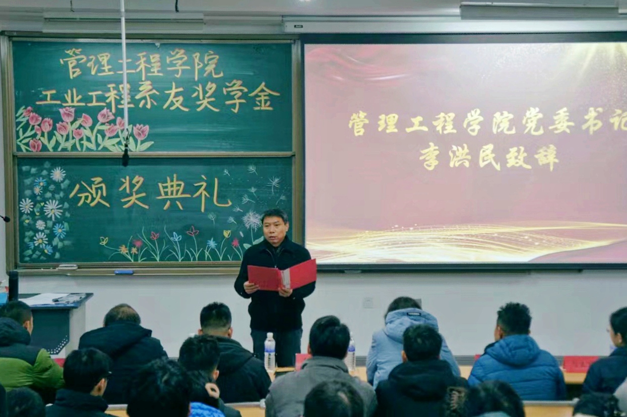 12月13日,管理工程学院举行首届“工业工程系校友奖学金”颁奖仪式。学院党委书记李洪民,学生处副处长丁于娟,学院党委副书记王中帅、副院长万鹏,校友代表工程2004级高华锋、2005级马玉容及师生代表参加颁奖仪式,仪式由辅导员郭纯孜主持。