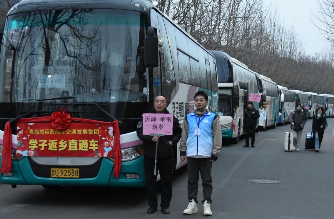 为贯彻落实团省委关于“我为学生送温暖”工作部署,持续擦亮校团委“我为同学办实事”工作品牌,提高广大青年学生的获得感,在寒假来临之际,学校团委联合青岛城运西海岸交通发展集团于1月16日开展“学子返乡直通车”活动,组织学生错峰返家。通过前期充分调研学生乘车情况,制定发车路线,为学生提供“点对点、一站式、多样化”的服务,有效解决学生乘车难、行李多、多次换乘、打车费用高等问题,为学生开辟了一条安全、便捷、温暖的回家路。